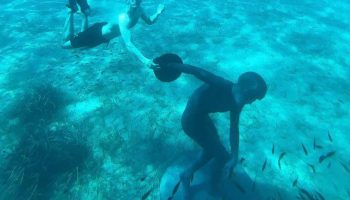 U Grčkoj je muškarac potopio 3-metarsku statuu Squidwarda s Chad licem kako bi zbunio arheologe budućnosti