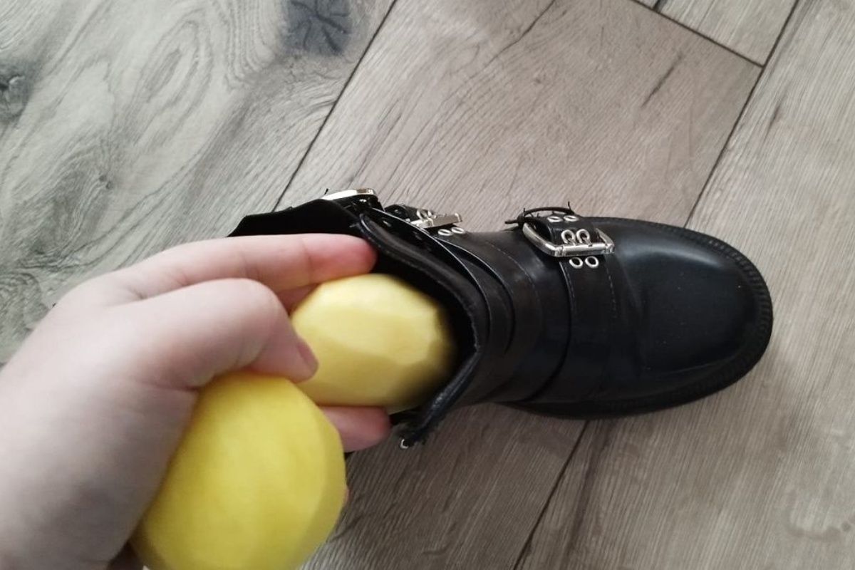 Gomolj je potrebno oguliti, osušiti i zamotati u jedan sloj papirnatog ručnika kako bi vlaga izlazila postupno. Tako osiguran krumpir omogućuje kontrolu procesa i smanjuje rizik od nastanka mrlja unutar obuće. Zahvaljujući tome, vlaga djeluje na kožu nježno i ravnomjerno. Nakon što stavite krumpir na mjesto najvećeg pritiska, preporučljivo je staviti cipele u plastičnu vrećicu kako vlaga ne bi isparavala tijekom cijele noći.