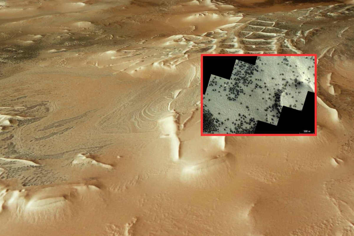 Svake godine proljeće na Marsu donosi neobičan prizor na južnom polu. Ono što je započelo kao rutinska fotografija južnog pola Marsa ubrzo je postalo zagonetka kada su se pojavile stotine tamnih mrlja. Stručnjaci iz Europske svemirske agencije (ESA) brzo su primijetili da nešto nije u redu, komentirajući: „Ovo ne bi trebalo ovako izgledati”. Ove sezone u regiji nadimka „Inca City” započelo je ono što znanstvenici nazivaju „sezona paukova”.