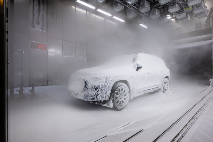 Dlatego zobaczysz zdjęcia, które wyglądają jak z laboratorium wojskowego. Są to tunele klimatyczne w centrum technicznym Mercedesa w Sindelfingen, gdzie Mercedes poddał GLB działaniu temperatur od -40º C do +60º C i wichrom o prędkości 200 km/h. Wszystko po to, aby dopracować nową pompę ciepła, dziedziczoną po VISION EQXX, która jest jednym z największych osiągnięć tego SUV-a.