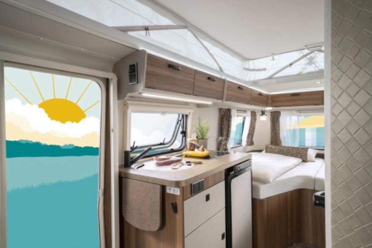 Wewnątrz Touring 2026 zachowuje praktycznego ducha marki. Meble o prostych liniach i naturalnych kolorach wykorzystują każdą przestrzeń, aby podróżni nie tęsknili za domem. W tym celu wyposażono go w kuchnię z kilkoma palnikami, lodówkę, jadalnię, którą można przekształcić w sypialnię, oraz łazienkę z prysznicem i umywalką. W zależności od wersji, dzięki podnoszonemu dachowi, który tworzy dodatkową przestrzeń do odpoczynku, może pomieścić do pięciu osób.