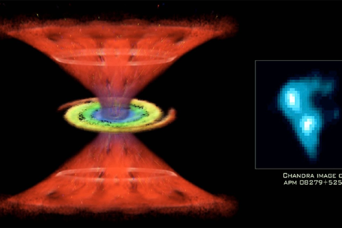 Za objekt koji je toliko udaljen, ovaj kvazar izgleda neobično sjajno u vidljivoj i dalekoj infracrvenoj svjetlosti. To sugerira da više fizičkih procesa pojačava svjetlost koju bilježimo. Tu na scenu stupa gravitacijska leća. Masivni objekti zakrivljuju prostor-vrijeme i mogu povećati pozadinske izvore, djelujući poput prirodnog teleskopa.