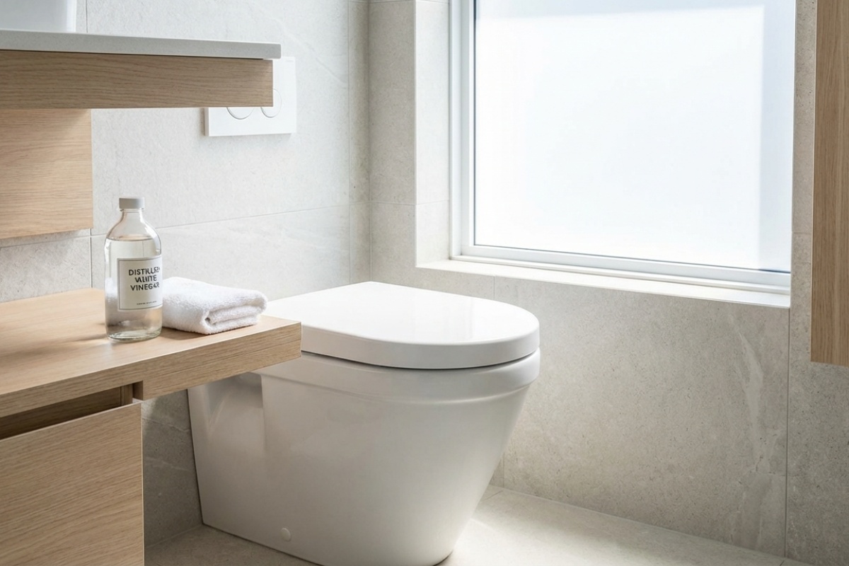 Bijeli alkoholni ocat je nevjerojatno moćno sredstvo protiv kamenca i žutih mrlja. Njegova kiselost prirodno razgrađuje mineralne naslage koje se nakupljaju ispod ruba školjke i na samom dnu, vraćajući zahodu prvobitni sjaj bez potrebe za mukotrpnim ribanjem.